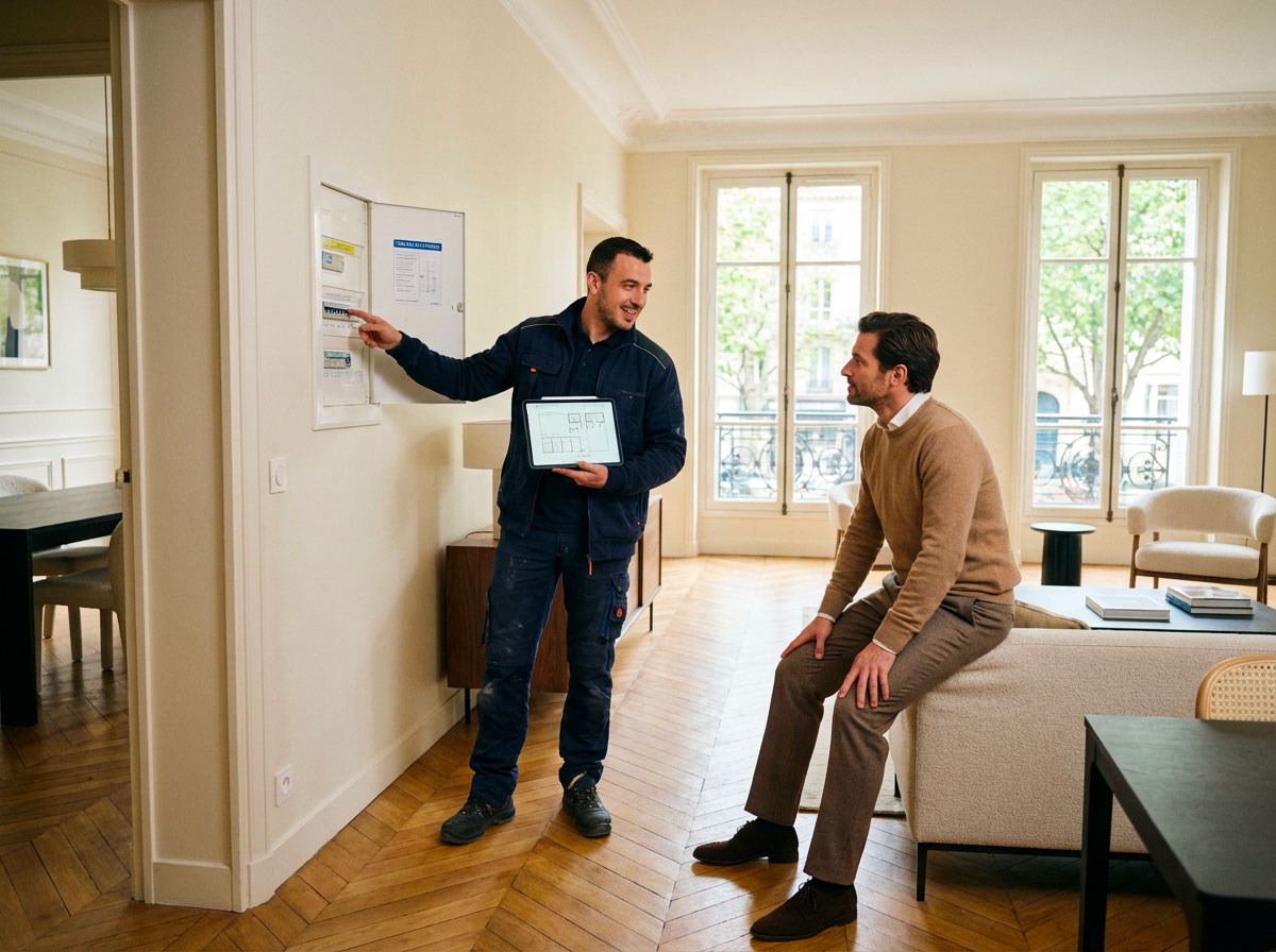 Notre approche combine diagnostic précis et solutions durables. Nous intervenons sur tous types d'installations résidentielles, des appartements parisiens aux maisons individuelles.