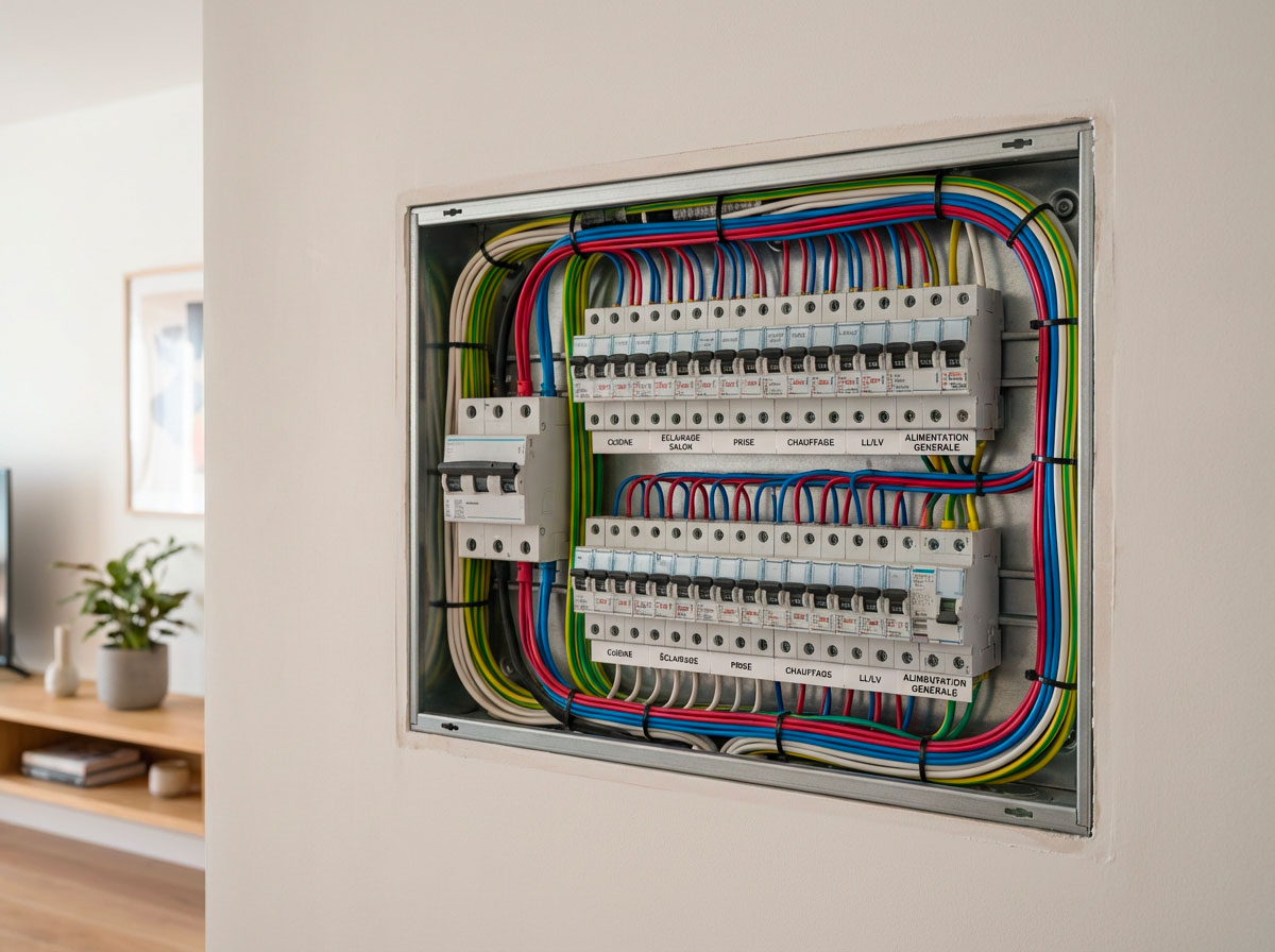 Nous gérons également les courants faibles : réseaux domestiques, câblage structuré, éclairages connectés, pour une installation cohérente et évolutive.